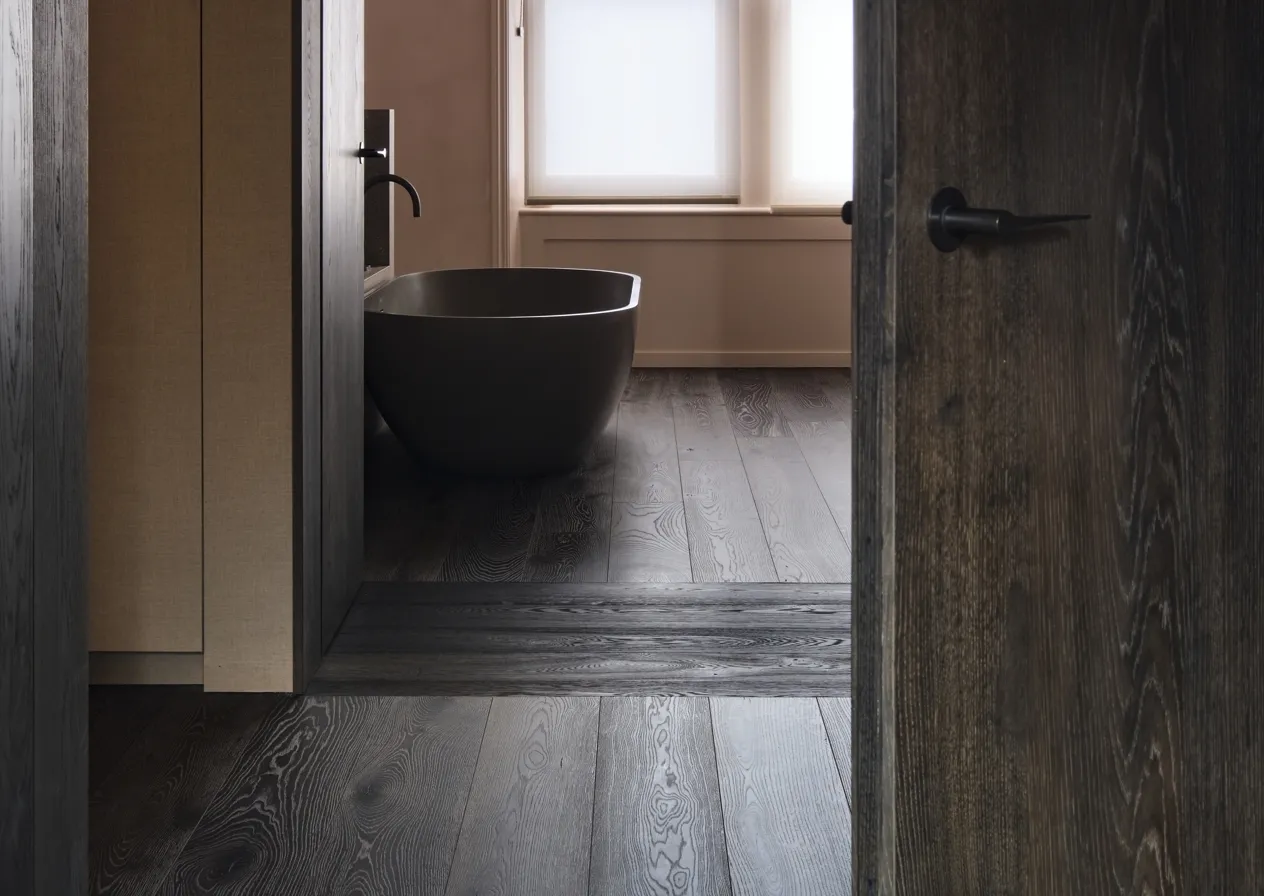Our oak does not merely sit within a room — it defines it. It draws the eye, anchors the architecture, and catches light in ways no machine can replicate. This is texture in dialogue with space. Not background, but intent.